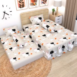 2 Pcs Sprei (1 Sprei Rumbai, 1 Sprei Flat/Fitted), 2 Sarung Bantal, 2 Sarung Guling